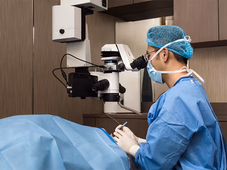 The procedure takes about 15 minutes for both eyes. After surgery, patients may experience mild discomfort and light sensitivity. Vision improvement is noticeable within hours, with full recovery in a few weeks. Following post-operative care instructions, such as avoiding eye rubbing and using prescribed eye drops, ensures optimal healing.